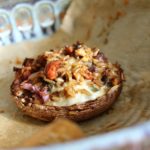 - Læg fyldet i portobellosvampene, hæld æggemassen over og bag i ovnen i 15-20min, de er færdige når æggemassen har sat sig.