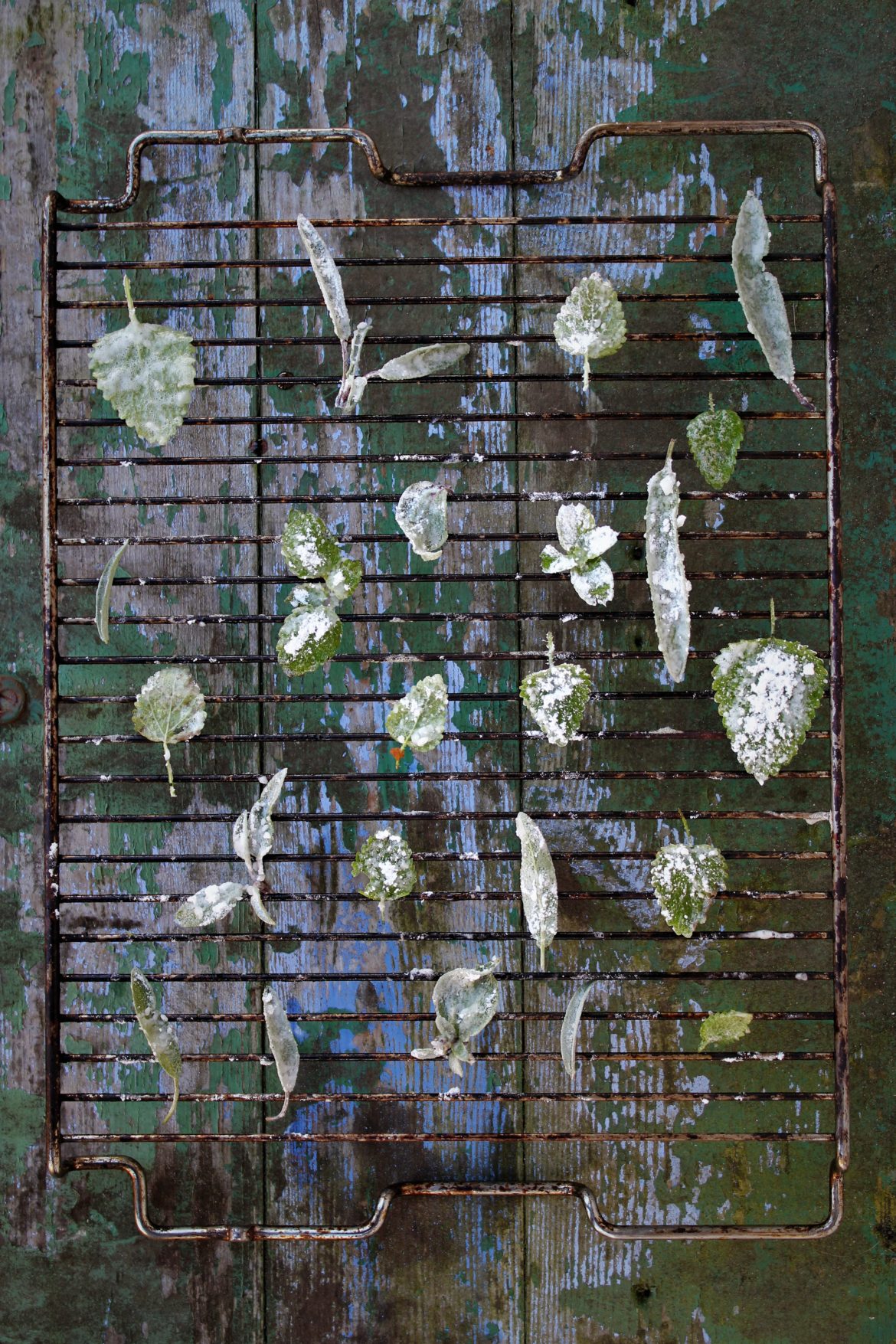 - Læg dem til at tørre på en bagerist, du har nu kandiserede urter.